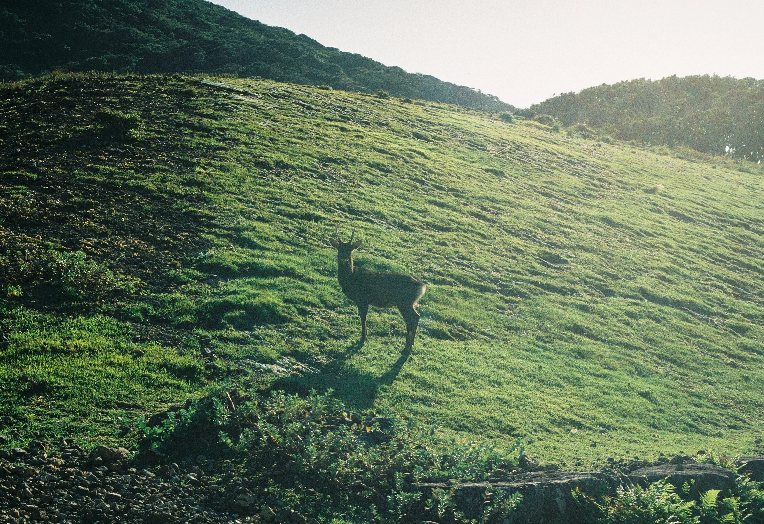 今では400頭を超える野生のキュウシュウジカが生息していて、人々がのこしていった集落跡を自由に駆け回っている。